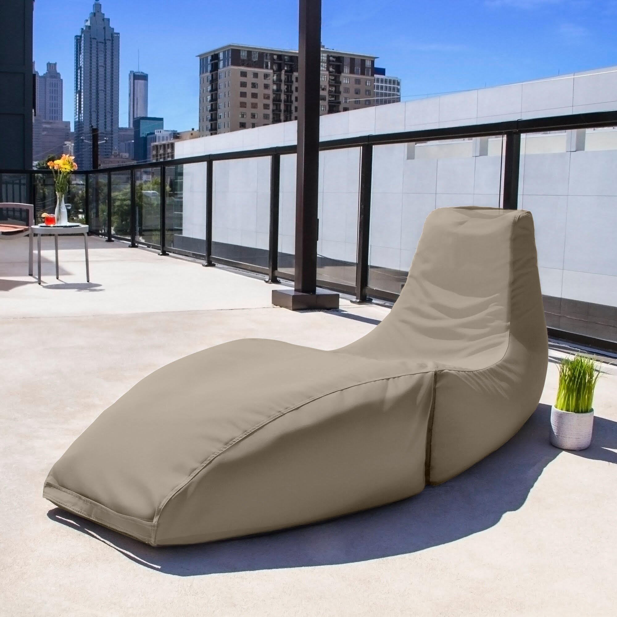 Bring the cozy comfort of a bean bag outside with the Prado Outdoor Chaise Lounge Chair! A perfect choice for anyone who loves to be cradled in luxury, this lounger is a unique and stylish alternative to standard patio furniture. A chaise lounge and deck chair in one, the Prado features a tapered supportive high back that makes it easy to sit upright or recline, and the extra length means anyone can get spread out and get comfortable. Because of its superior durable all-weather fabric and resistant bead filling, this lounger can handle heavy use without losing its structure or good looks. Performing flawlessly both indoors and out, and the Prado is also hinged and can be folded for easy storage or travel. The solution dyed acrylic cover is treated to resist fade and weather and is both removable and machine-washable ensuring that your Prado will always look its best. Care instructions for cover: machine wash with cold water, tumble dry on low heat.