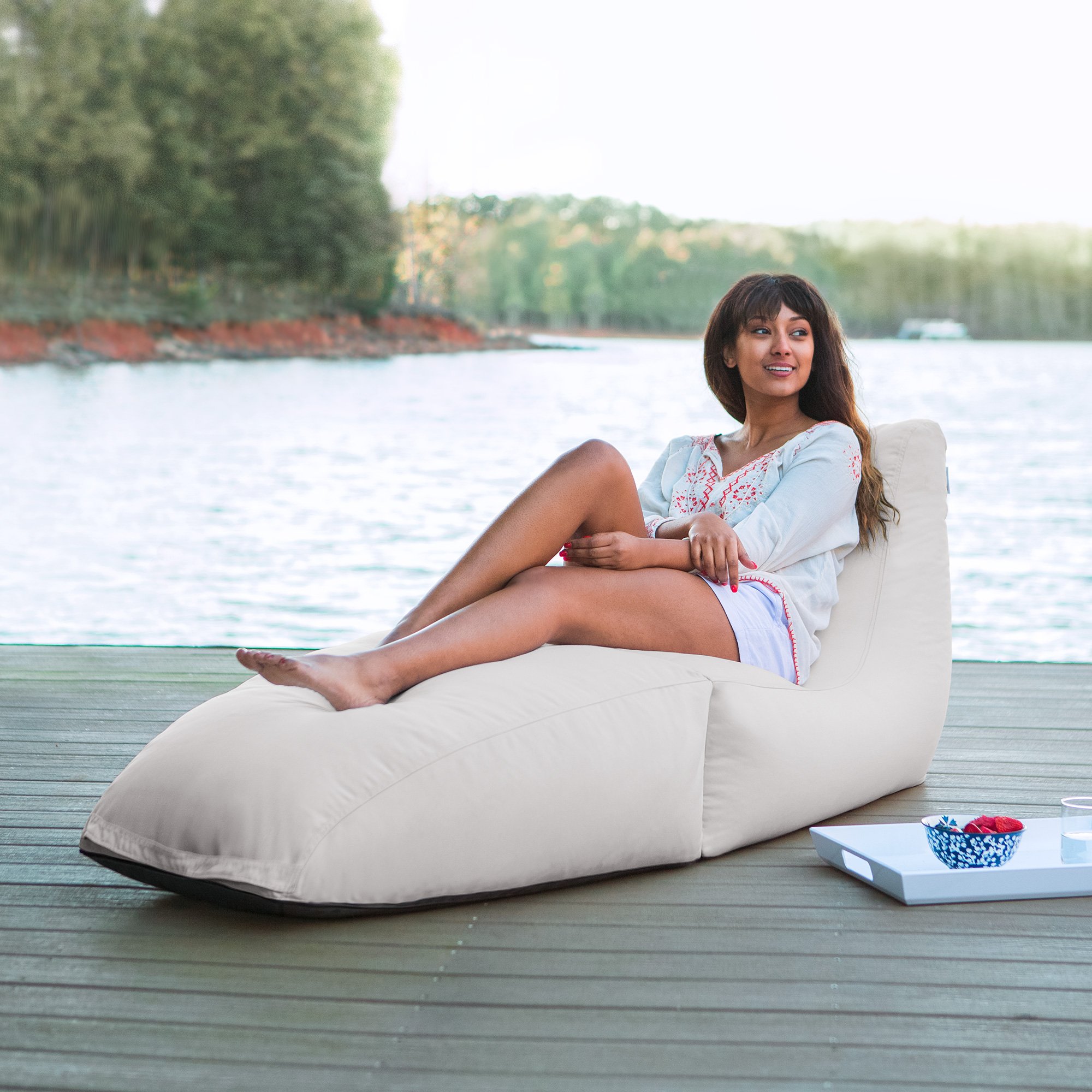 Bring the cozy comfort of a bean bag outside with the Prado Outdoor Chaise Lounge Chair! A perfect choice for anyone who loves to be cradled in luxury, this lounger is a unique and stylish alternative to standard patio furniture. A chaise lounge and deck chair in one, the Prado features a tapered supportive high back that makes it easy to sit upright or recline, and the extra length means anyone can get spread out and get comfortable. Because of its superior durable all-weather fabric and resistant bead filling, this lounger can handle heavy use without losing its structure or good looks. Performing flawlessly both indoors and out, and the Prado is also hinged and can be folded for easy storage or travel. The solution dyed acrylic cover is treated to resist fade and weather and is both removable and machine-washable ensuring that your Prado will always look its best. Care instructions for cover: machine wash with cold water, tumble dry on low heat.
