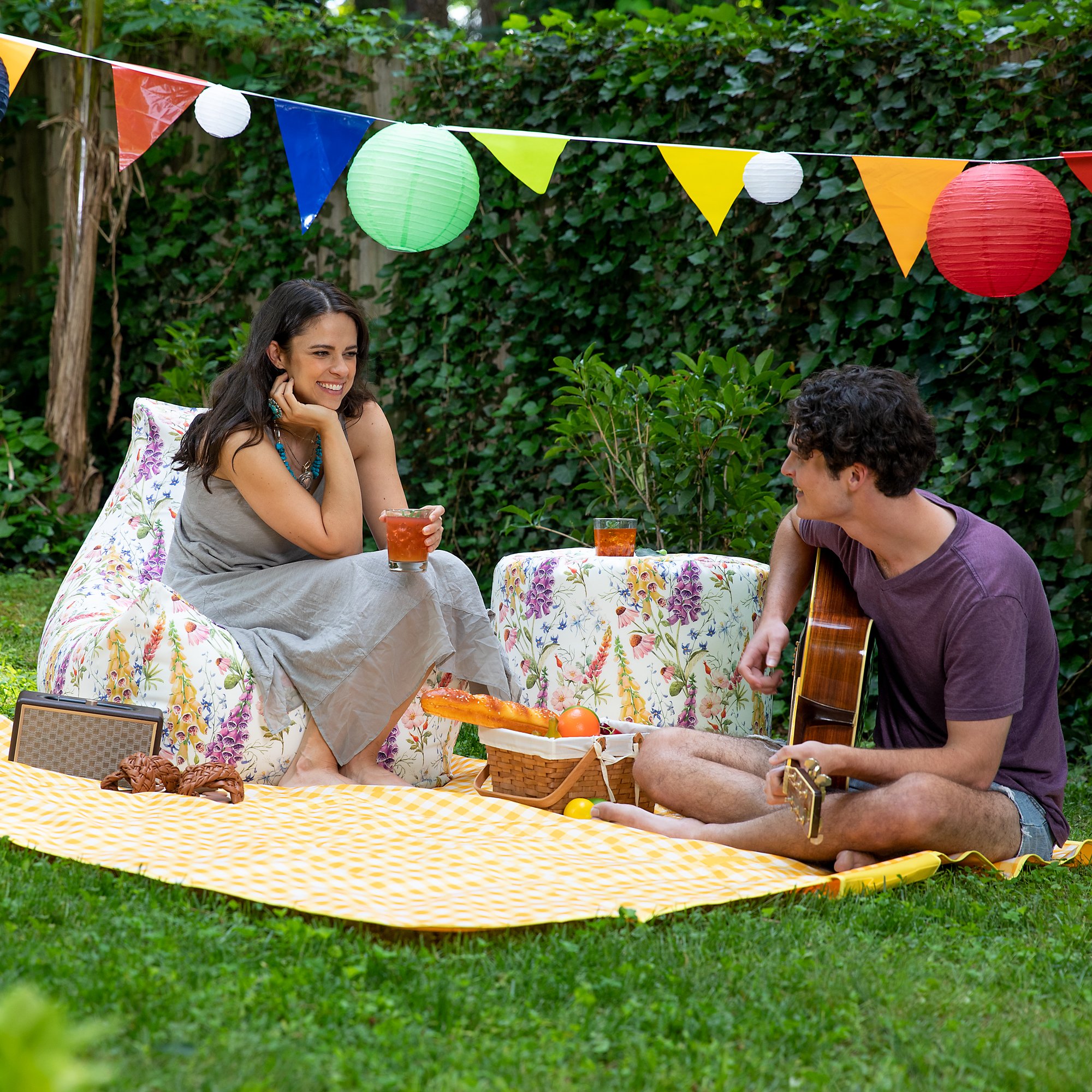 Bid farewell to hard wood or metal outdoor chairs! The Juniper Outdoor Bean Bag Lounge Chair is the clever combination of a comfy bean bag and luxurious patio chair. The modern tapered design keeps your back comfortably supported and stable while the EPS bead filling conforms to your body. The handle along the top makes it easy to move and re-position when lounging poolside. This Juniper is also part of our brand-new Tempo Prints Collection, featuring UV-resistant covers with new summer prints made with sustainable materials. The cover is removable and machine washable to ensure your chair always looks its best, and the inner-liner’s childproof zipper keeps the filling safely out of sight when cleaning the cover. Care instructions for cover: machine wash with cold water, tumble dry on low heat. The Juniper pairs perfectly with the Jaxx Leon Outdoor Ottoman (sold separately).