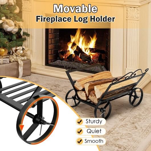 Firewood Rack Decorative Rustproof Steel Fireplace Log Holder with Wheels