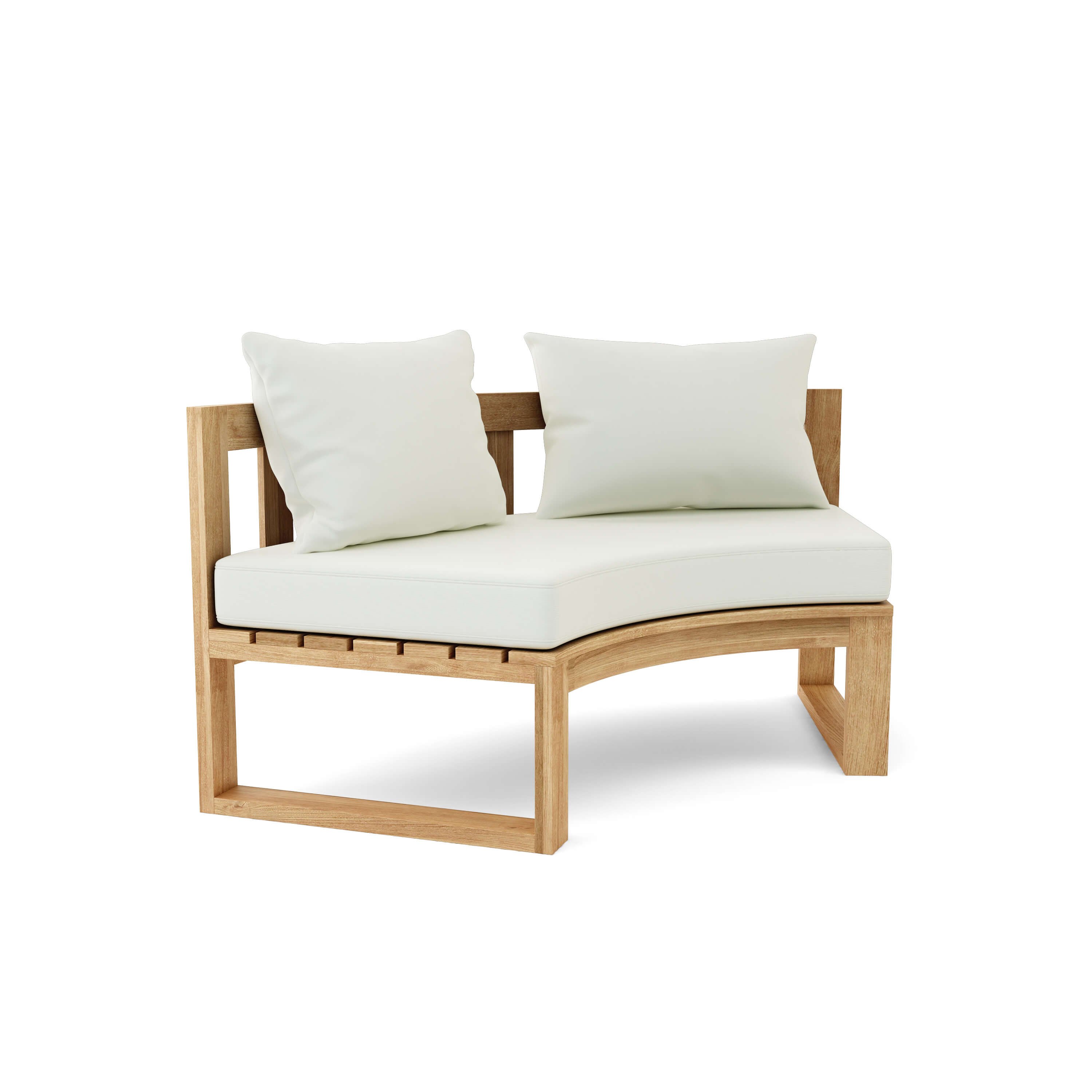 Perfect for commercial and public use, the Circular Modular Bench is also the ideal deep seating set for the home, yard and outdoors. Featuring three Benches that seat two, one Circular Planter and a Round Side Table, the set is made of premium grade unfinished teak that’s sanded smooth for a clean natural finish. Add additional pieces to the set such as the Straight Bench, or a Straight Side Table which can be placed on either the edges or the middle of the set. Mix and Match different styles and layouts such as a “C” shape, an “S” shape with seats facing away from another, or a fully circular layout. The possibilities are endless the choice yours. Includes 5.5” thick All-Weather Sunbrella cushions and pillows with your choice of color.